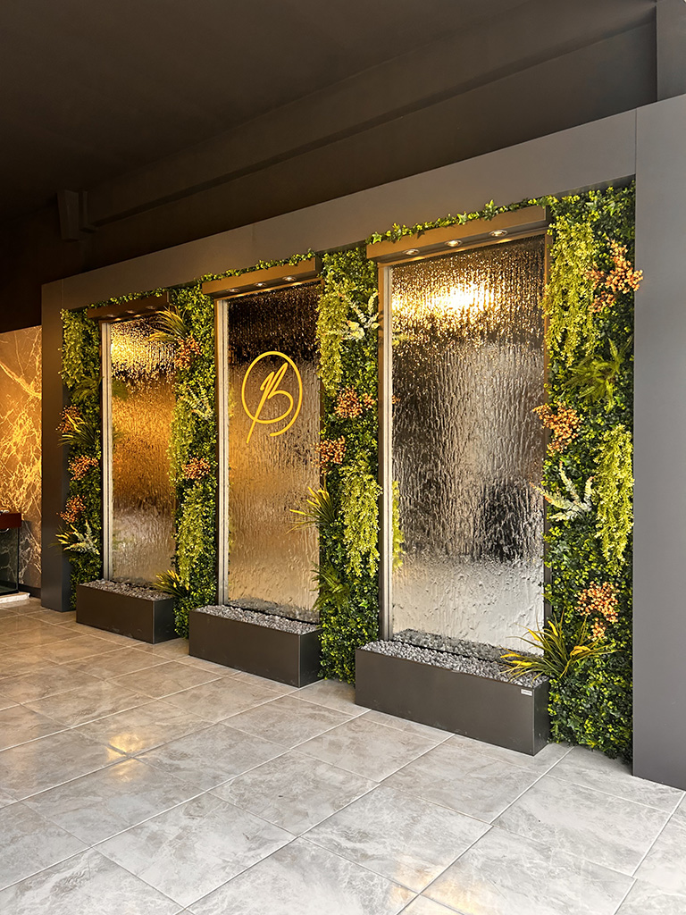 Amazon Konsept Uygulaması, geniş ve prestijli mekanlar için tasarlanmış özel bir şelale sistemidir. Üç ayrı şelale, belirli aralıklarla yerleştirilir ve aralarındaki boşluklara özenle seçilmiş bitkilerle doğal bir dokunuş eklenir. Bu tasarım, mekânınıza ormanın derinliklerinden gelen bir huzur ve ferahlık hissi kazandırır. Amazon Konsept, büyük duvarlar için idealdir ve özellikle davet salonları, lüks oteller, seçkin restoranlar ve alışveriş merkezleri gibi geniş ve dikkat çekici alanlarda tercih edilir. Bu benzersiz sistem, mekanlarınıza hem estetik bir değer katar hem de ziyaretçileriniz için büyüleyici bir atmosfer yaratır.
