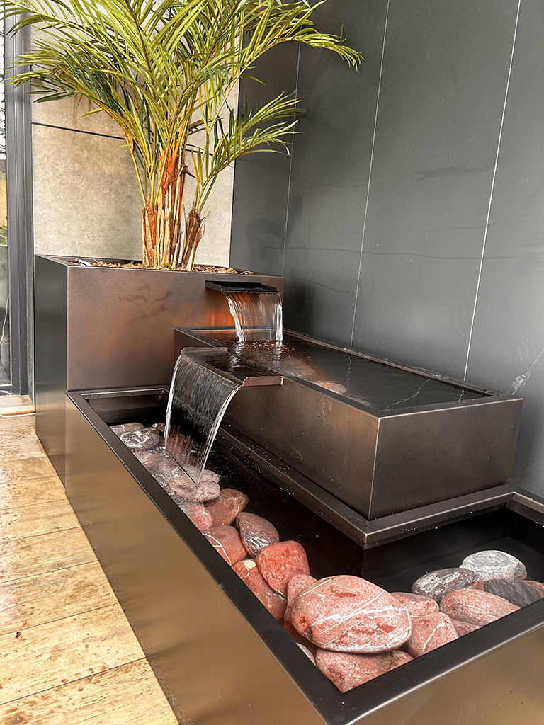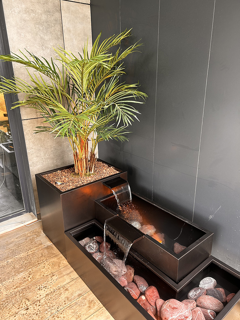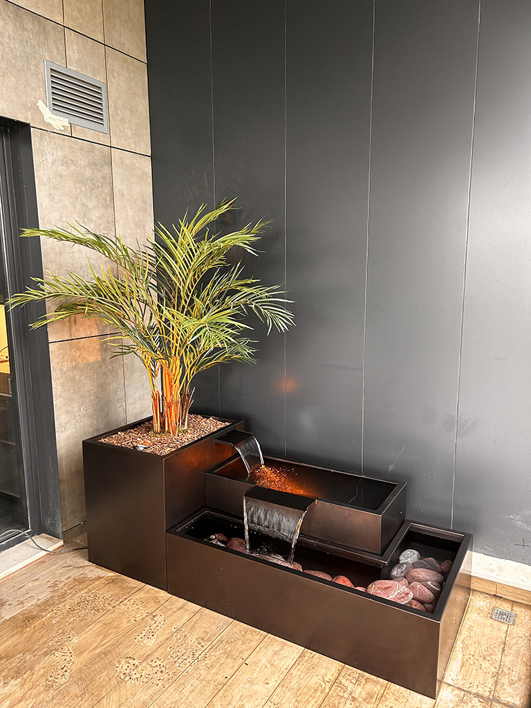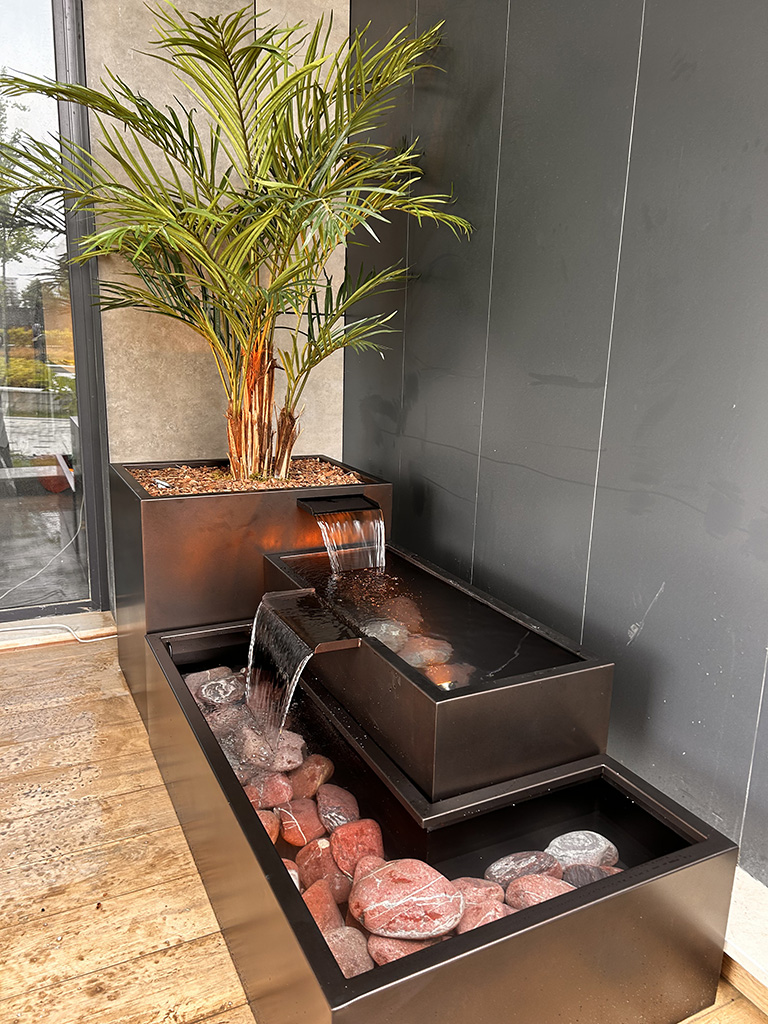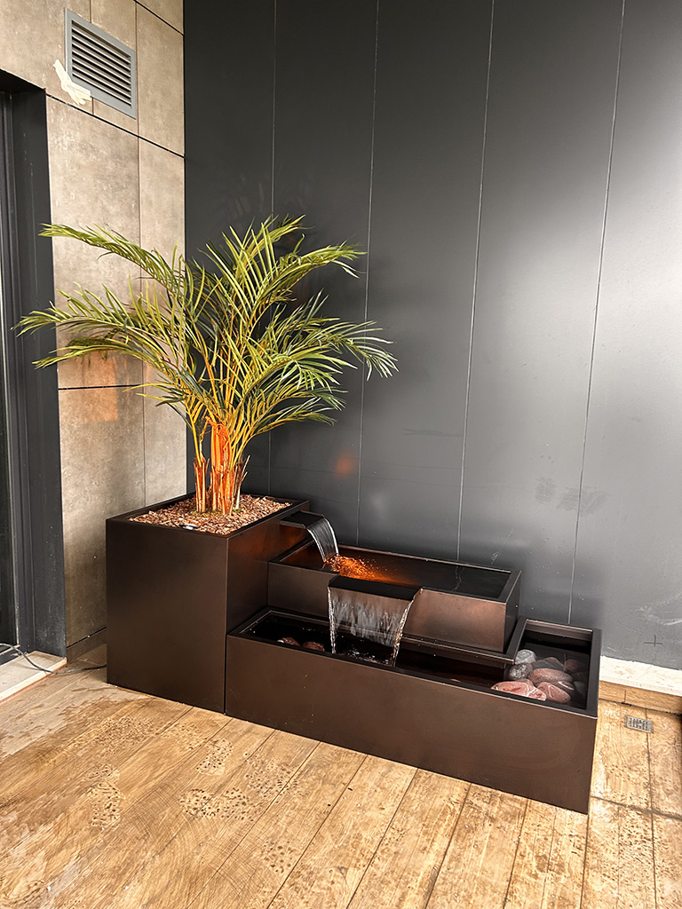 Model 06, dayanıklı taş görünümlü malzemelerden üretilmiş olup, suyun düzenli akışını sağlayan kaliteli bir pompa sistemine sahiptir. Özellikle, sessiz çalışan pompa sistemi, suyun huzur verici bir akış oluşturmasını sağlar. Aynı zamanda, hava koşullarına dayanıklı malzemeleri sayesinde dört mevsim boyunca estetik görünümünü korur. Son olarak, düşük bakım gereksinimiyle yıllarca zahmetsizce kullanılabilir.
