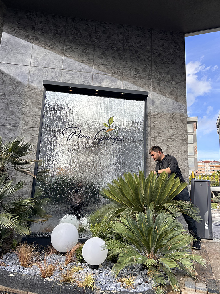 Su perdesi, modern iç mekanlarda şıklık ve estetik kazandıran bir dekorasyon öğesidir. Tamamen paslanmaz çelik çerçeve içinde yer alan bu sistemler, cam su duvarı veya ayna su duvarı olarak tasarlanabilir.