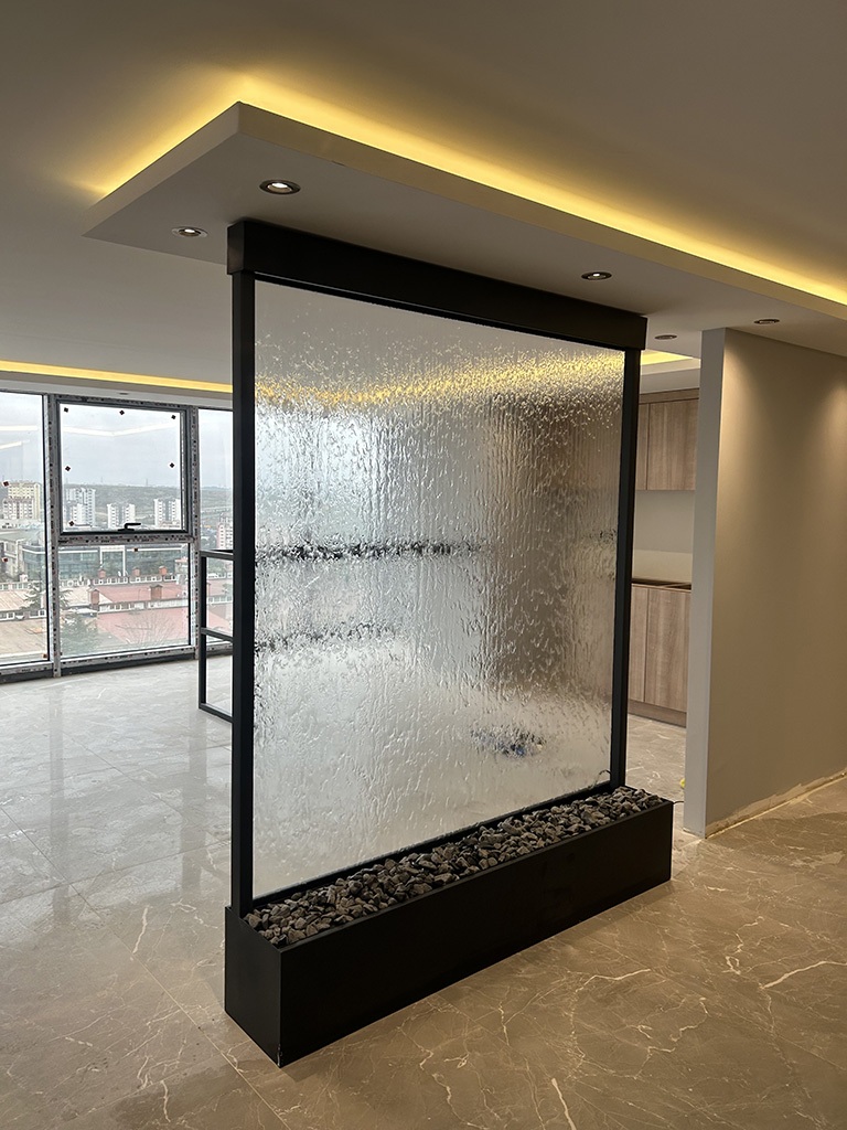Su perdeleri, suyun doğal akışını iç mekanlara taşıyarak hem görsel bir cazibe oluşturur. Hem de dinlendirici bir etki sağlar. Su Perdesi Model 24, modern tasarımı ve suyun yumuşak akışı ile her türlü mekana estetik bir dokunuş katmak için idealdir. Bundan dolayı, hem ev hem de ofis dekorasyonunda sıklıkla tercih edilir. Özellikle, suyun nazik sesi ve zarif akışı, mekanda huzurlu bir atmosfer yaratmak isteyenler için mükemmel bir çözümdür. Sonuçta, Model 24, bulunduğu ortama sofistike bir görünüm kazandırırken rahatlatıcı bir ambiyans oluşturur.